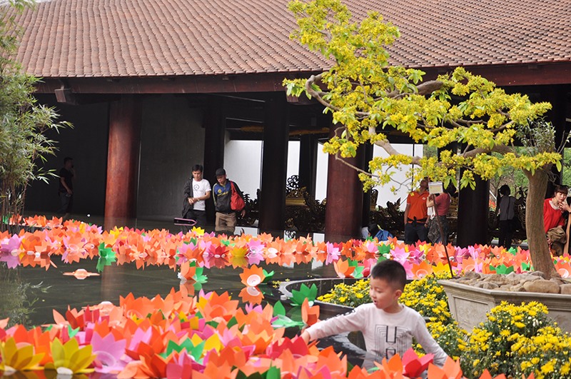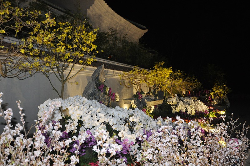 Hoa được trưng bày trong các không gian của khu Trung tâm Văn hoá Trúc Lâm Yên Tử (TP Uông Bí) trong Lễ hội hoa Anh đào - Mai vàng Yên Tử 2018.