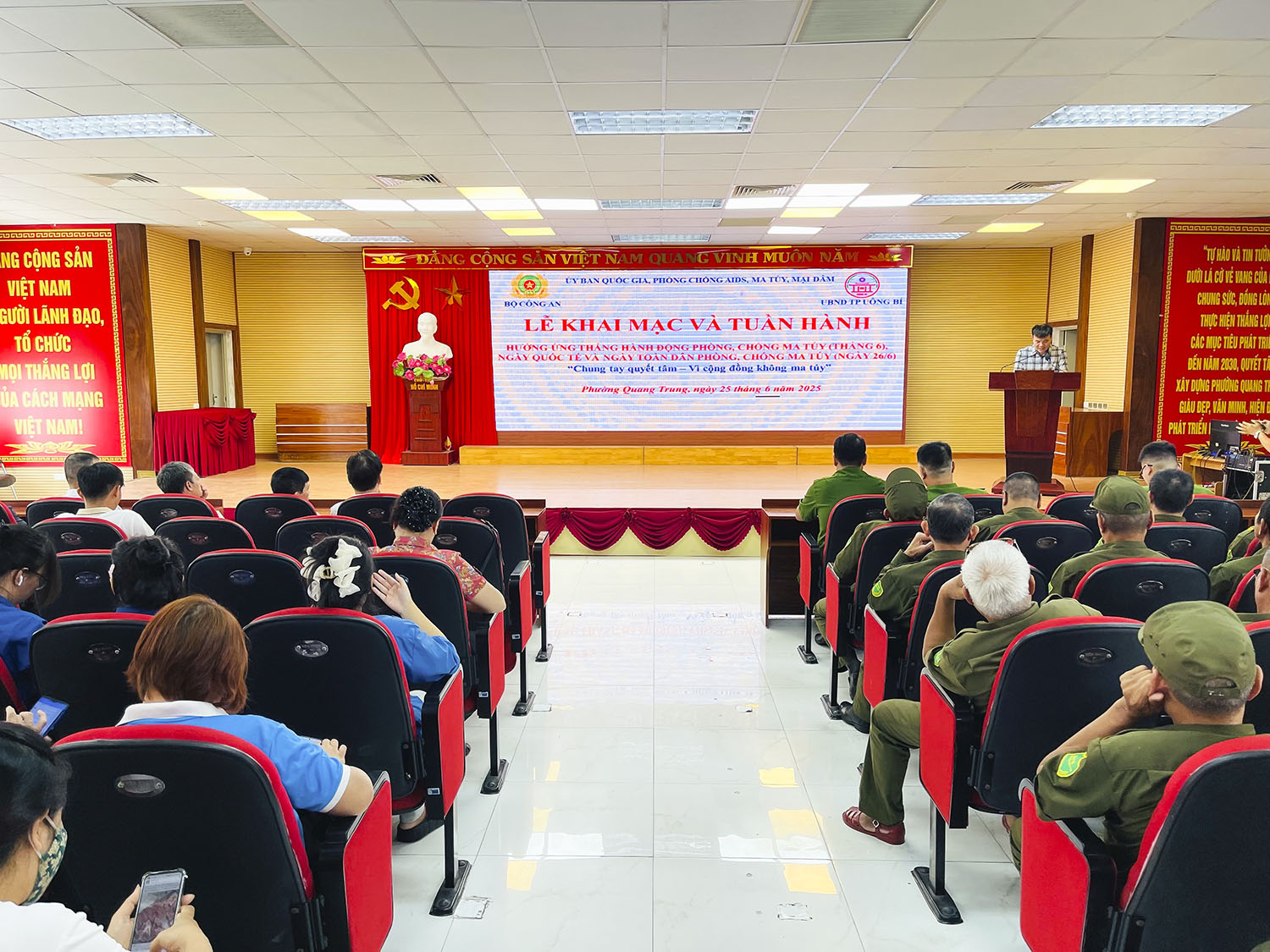 Ngày 25/6, phường Quang Trung tổ chức Lễ khai mạc và tuần hành hưởng ứng Tháng hành động phòng, chống ma túy tháng 6 và Ngày quốc tế, Ngày toàn dân phòng, chống ma túy (26/6).