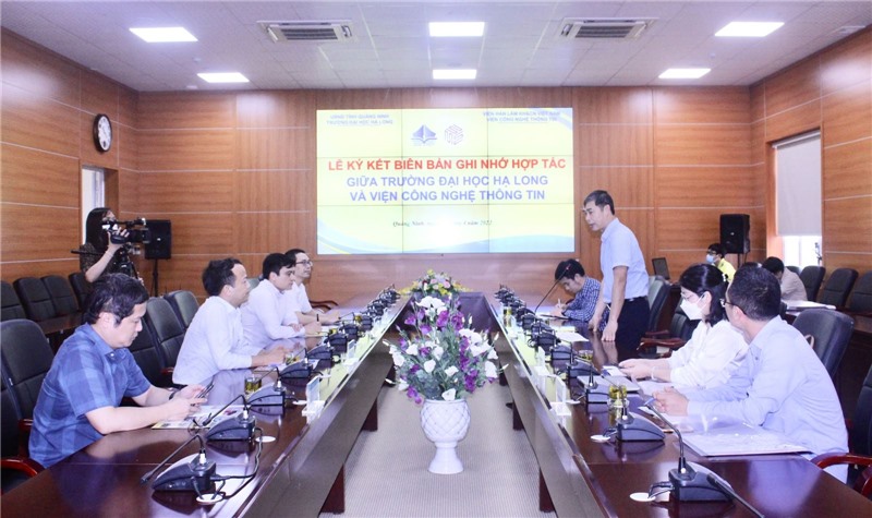 Sau thảo luận, lãnh đạo Trường Đại học Hạ Long và Viện Công nghệ thông tin đã thống nhất, ký kết biên bản ghi nhớ hợp tác với các nội dung cụ thể. Theo đó, về công tác đào tạo, 2 đơn vị sẽ hợp táctổ chức đào tạo đại học, sau đại học thuộc lĩnh vực công nghệ thông tin. Riêng đối với đào tạo đại học, tập trung phối hợp xây dựng kế hoạch, chương trình và tổ chức đào tạo kỹ sư, cử nhân chất lượng cao phục vụ nhu cầu nhân lực về công nghệ thông tin và chuyển đổi số cho tỉnh Quảnh Ninh. Viện Công nghệ thông tin hỗ trợ Trường Đại học Hạ Long xây dựng chương trình đào tạo, phát triển đội ngũ để mở ngành đào tạo Thạc sĩ Khoa học máy tính; phối hợp đề xuất, tổ chức các chương trình bồi dưỡng về công nghệ thông tin, chuyển đổi số nhằm đào tạo nguồn nhân lực trình độ cao phục vụ cho sự phát triển kinh tế - xã hội của Quảng Ninh đáp ứng yêu cầucách mạng công nghiệp 4.0.