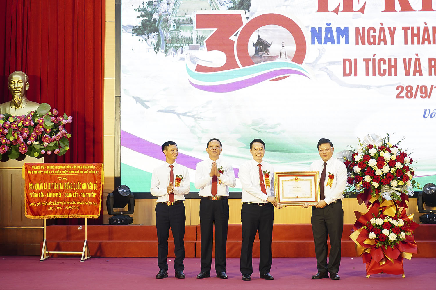 Trong chương trình, đại biểu đã ôn lại quá trình 30 năm xây dựng và phát triển của Ban quản lý Di tích và Rừng Quốc gia Yên Tử. Ngày 28 tháng 9 năm 1992, Ủy ban nhân dân tỉnh Quảng Ninh ra Quyết định số 2275 thành lập Ban Quản lý Di tích lịch sử và Danh thắng Yên Tử - cơ quan tiền thân của Ban Quản lý Di tích và Rừng Quốc gia Yên Tử. Trong 30 năm, Ban Quản lý Di tích và Rừng Quốc gia Yên Tử đã trải qua 3 giai đoạn xây dựng và phát triển, 2 lần được đổi tên và trực thuộc 2 cơ quan chủ quản khác nhau. Giai đoạn 1 (từ 28/9/1992 đến 5/9/2007) mang tên “Ban Quản lý Di tích lịch sử và Danh thắng Yên Tử” trực thuộc Ủy ban nhân dân thị xã Uông Bí. Giai đoạn 2 (từ 6/9/2007 đến 16/9/2012) mang tên "Trung tâm Quản lý Di tích - Danh thắng Yên Tử” trực thuộc Ban Quản lý các di tích trọng điểm Quảng Ninh, tiếp đó trực thuộc Ủy ban nhân dân thị xã Uông Bí. Giai đoạn 3 (từ 17/9/2012 đến nay) mang tên “Ban Quản lý Di tích và Rừng Quốc gia Yên Tử” trực thuộc Ủy ban nhân dân thành phố Uông Bí.