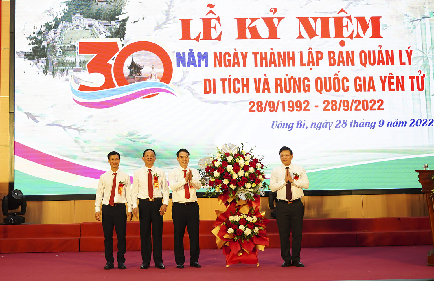 Phát biểu chúc mừng tại buổi lễ, đồng chí Nghiêm Xuân Cường, Tỉnh ủy viên, Bí thư Thành ủy, Chủ tịch HĐND thành phố biểu dương, ghi nhận những đóng góp, nỗ lực của tập thể lãnh đạo, cán bộ, viên chức, lao động Ban quản lý Di tích và Rừng Quốc gia Yên Tử trong 30 năm qua. Trong đó đã trực tiếp bảo vệ an toàn Khu Di tích - Rừng Đặc dụng (sau là Rừng Quốc gia) Yên Tử và những thắng cảnh, di tích được giao quản lý; giúp thành phố tôn tạo, xây dựng quần thể Di tích và Rừng Quốc gia Yên Tử ngày càng khang trang để Yên Tử trở thành điểm đến hấp dẫn đối với du khách thập phương trong và ngoài nước; đồng thời phát huy được tiềm năng, giá trị nhiều mặt của Khu Di tích - Danh thắng và hiện đang trong tiến trình đề cử là di sản văn hóa thế giới, thiết thực góp phần xây dựng Uông Bí thành trung tâm du lịch văn hóa tâm linh của cả nước.