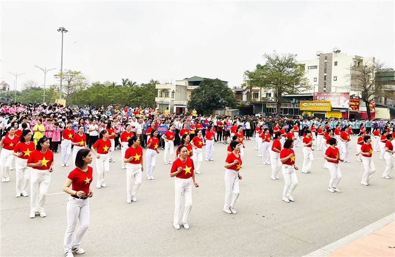 Dự và hưởng ứng lễ phát động có đồng chí Nghiêm Xuân Cường, Tỉnh ủy viên, Bí thư Thành ủy, Chủ tịch HĐND thành phố; lãnh đạo các phòng, ban, ngành, xã phường; trên 1.000 vận động viên là cán bộ, công chức, viên chức các phòng, ban, ngành, đơn vị, lực lượng vũ trang, doanh nghiệp, giáo viên và học sinh các trường học trên địa bàn.