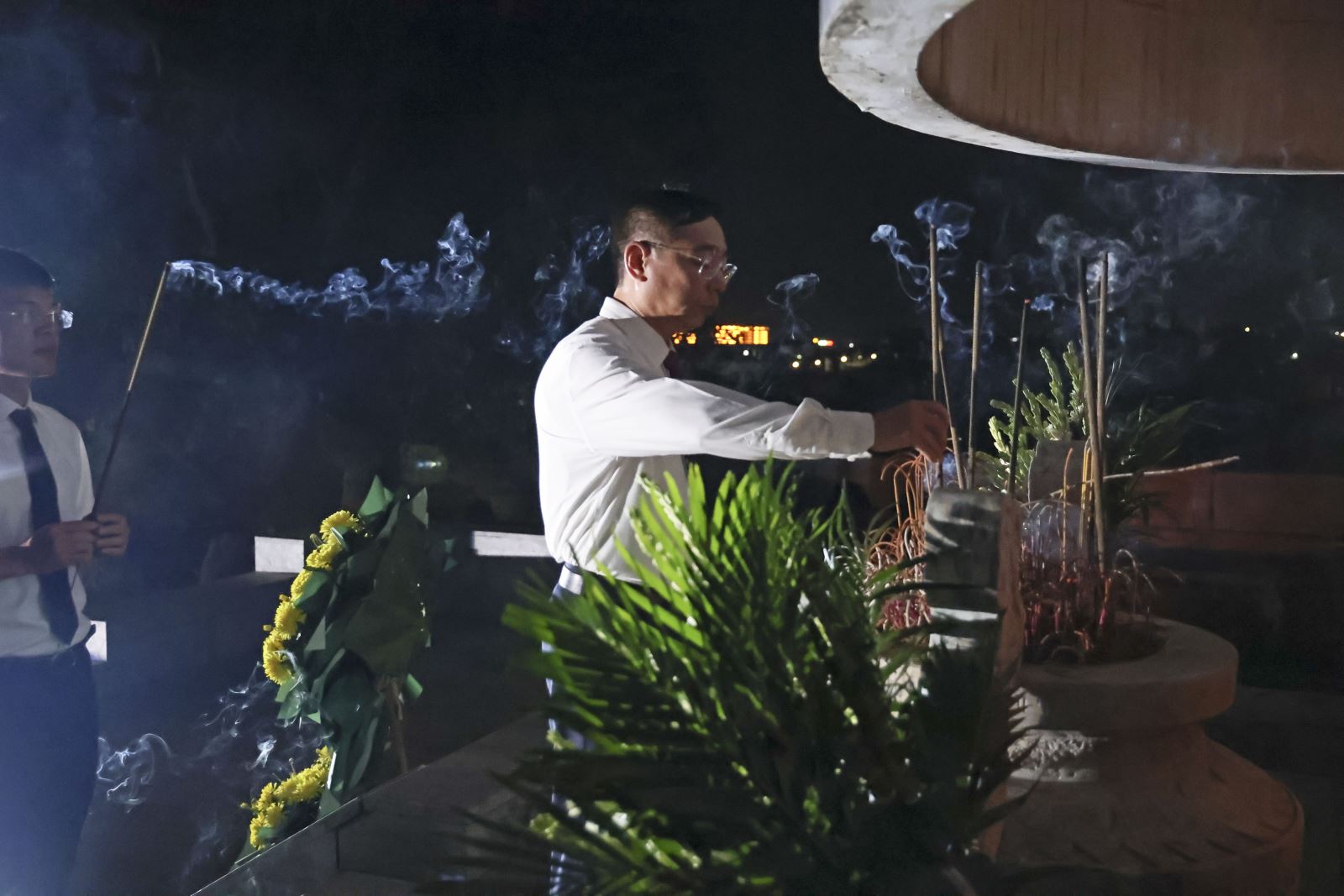 Các đại biểu dâng hương tại Đài tưởng niệm liệt sĩ.