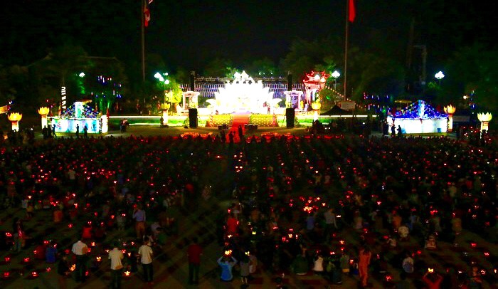 Tiếp đó, Lễ truyền đăng diễn ra trong không khí trang trọng, thành kính. Theo quan niệm truyền thống của Phật Giáo, Đăng tượng trưng cho trí tuệ, với ý nghĩa là chân lý của Đức Phật như ngọn đèn chiếu sáng và dẫn dắt chúng sinh thoát khỏi u minh phiền não, đi đến an lạc. Hoa đăng được thắp sáng nhằm mục đích tôn vinh những giá trị tinh thần, giá trị tâm linh và văn hóa của dân tộc.