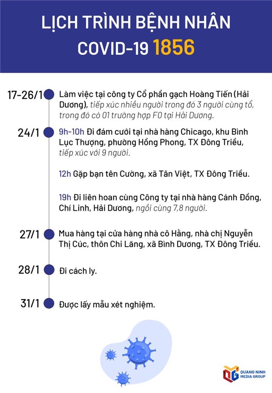 Lịch trình bệnh nhân Covid-19 1856 (TX Đông Triều)