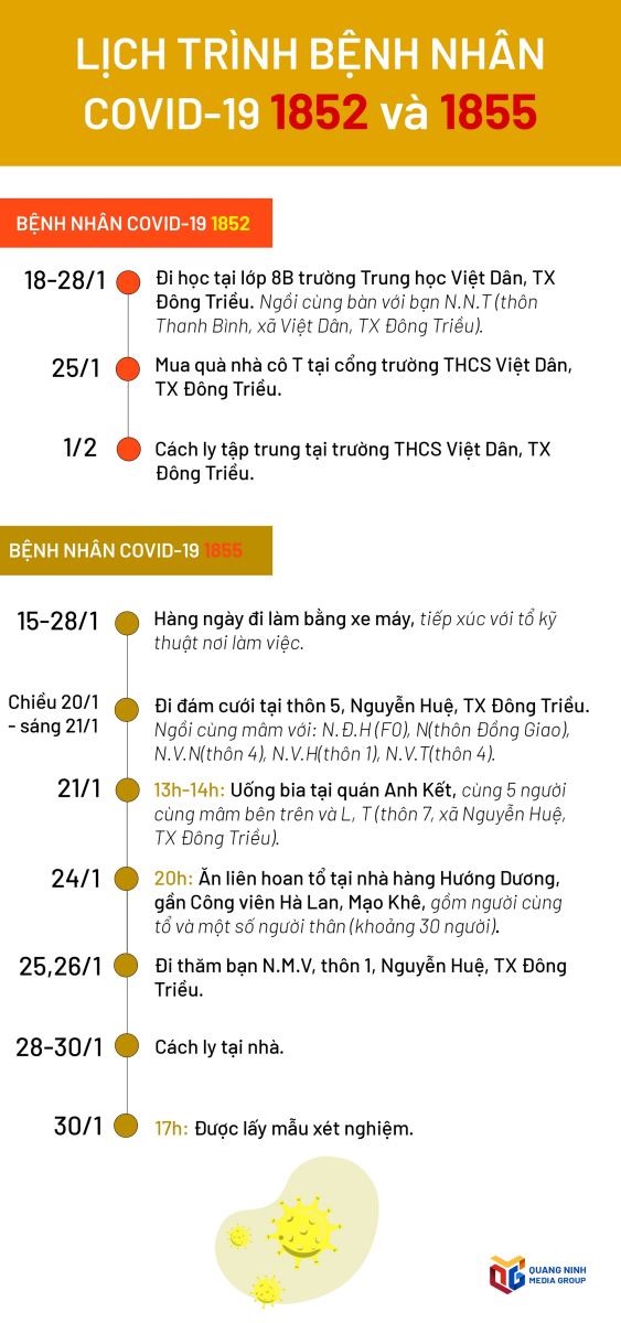 Lịch trình di chuyển của bệnh nhân Covid-19 1852 và 1855 (TX Đông Triều)