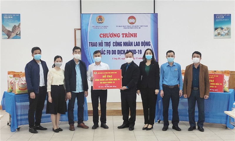 LĐLĐ thành phố trao quà hỗ trợ công nhân mắc Covid-19 tại Công ty TNHH Sao Vàng Chi nhánh Uông Bí.