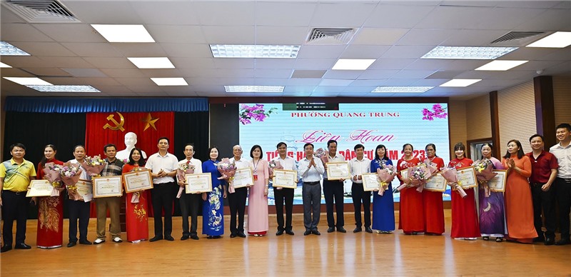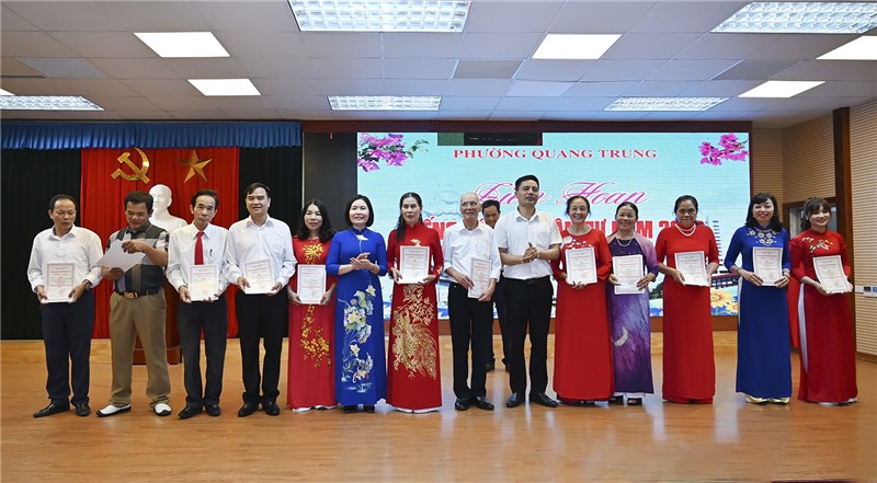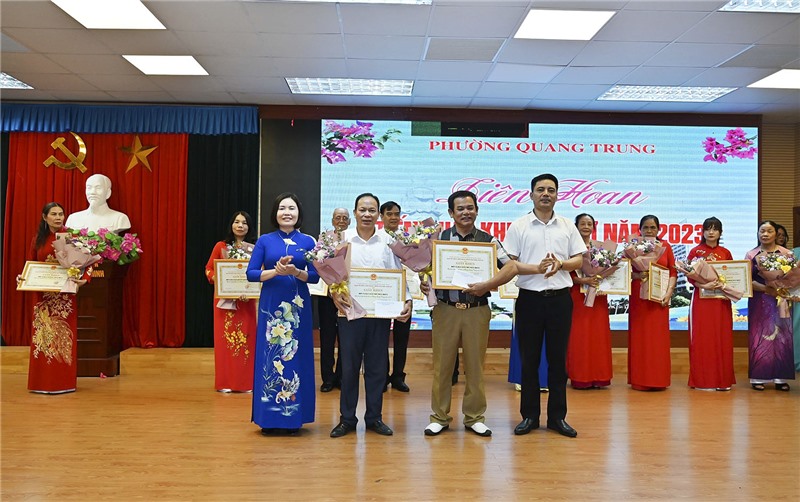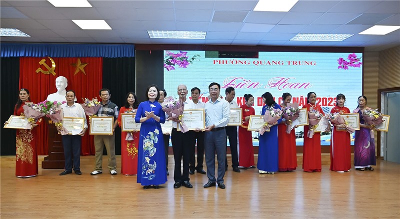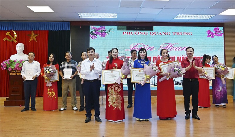 Lãnh đạo phường Quang Trung trao giải khuyến khích, giải Ba, giải Nhì toàn đoàn cho các khu dân cư.
