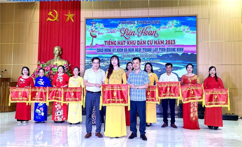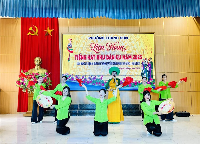 Chào mừng kỷ niệm 62 năm Ngày thành lập thị xã Uông Bí (nay là thành phố Uông Bí) 28/10/1961-28/10/2023, 60 năm Ngày thành lập tỉnh Quảng Ninh 30/10/1963 - 30/10/2023, ngày 4/6, phường Thanh Sơn tổ chức Liên hoan Tiếng hát khu dân cư năm 2023.