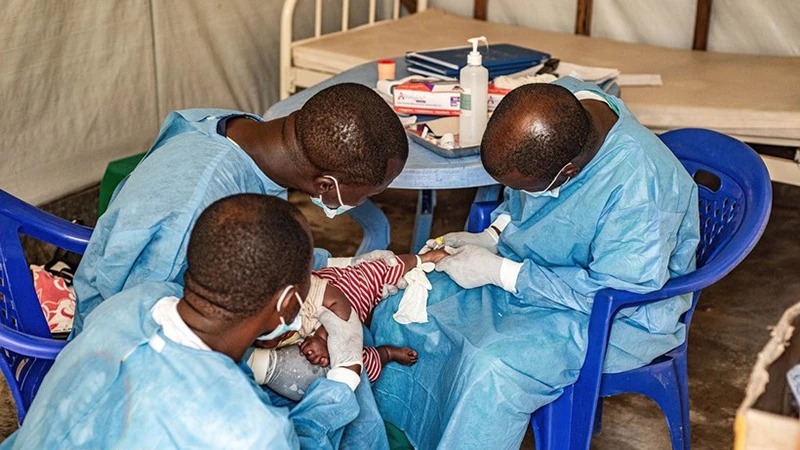 Nhân viên y tế điều trị cho bệnh nhân mắc đậu mùa khỉ tại bệnh viện ở tỉnh Bắc Kivu, Cộng hòa Dân chủ Congo ngày 15/8/2024. (Ảnh: THX/TTXVN)