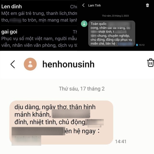 Những tin nhắn gạ tình trắng trợn được tự động gửi đến điện thoại người dùng, nếu không tỉnh táo, người dùng có thể mất thông tin cá nhân, lộ tài khoản ngân hàng…