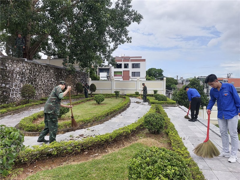 Nằm trong chuỗi các hoạt động đó, chiều ngày 21/7, tại Đài tưởng niệm các anh hùng liệt sỹ thành phố, lực lượng vũ trang thành phố phối hợp cùng đoàn thanh niên phường Thanh Sơn đã tiến hành dọn dẹp vệ sinh, thu gom rác, phát quang cây cỏ khu vực khuôn viên và lau chùi toàn bộ tường bao xung quanh Đài tưởng niệm.