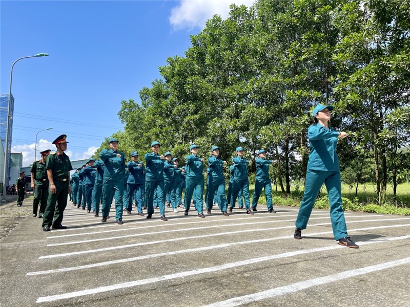 Khối diễu binh gồm 79 nữ dân quân tự vệ được lựa chọn từ các ban, ngành, cơ quan, đơn vị trên địa bàn. Ngay từ những ngày đầu tháng 9, lực lượng này đã trải qua điều kiện thời tiết khí hậu nắng nóng, tích cực tham gia tập luyện với tinh thần khẩn trương, nghiêm túc. Tất cả đều nỗ lực hết mình hướng tới ngày kỷ niệm của quê hương.