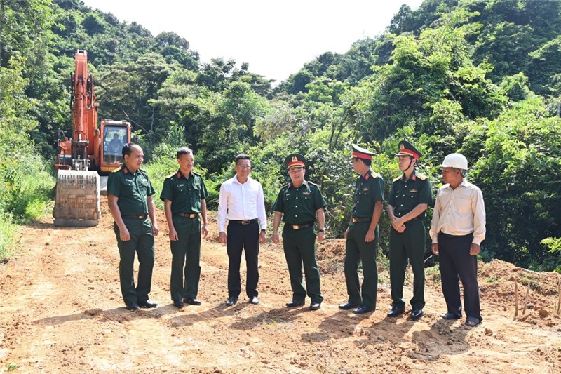 Đại tá Khúc Thành Dư, Chỉ huy trưởng Bộ CHQS tỉnh kiểm tra tiến độ thực hiện công trình đường giao thông thôn 3, xã Thanh Lân, huyện Cô Tô do Bộ CHQS tỉnh, Tập đoàn Công nghiệp Than - Khoáng sản Việt Nam phối hợp hỗ trợ.