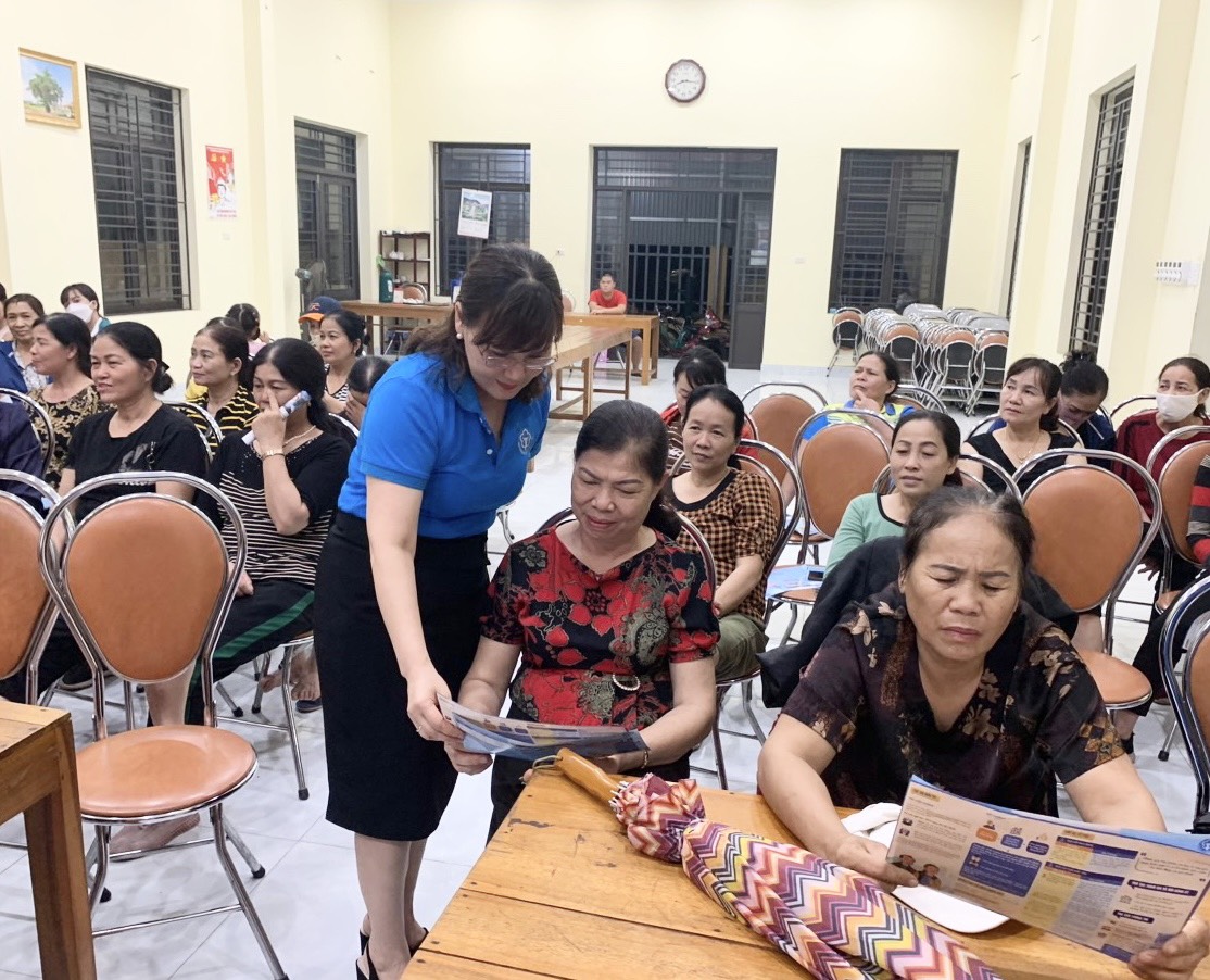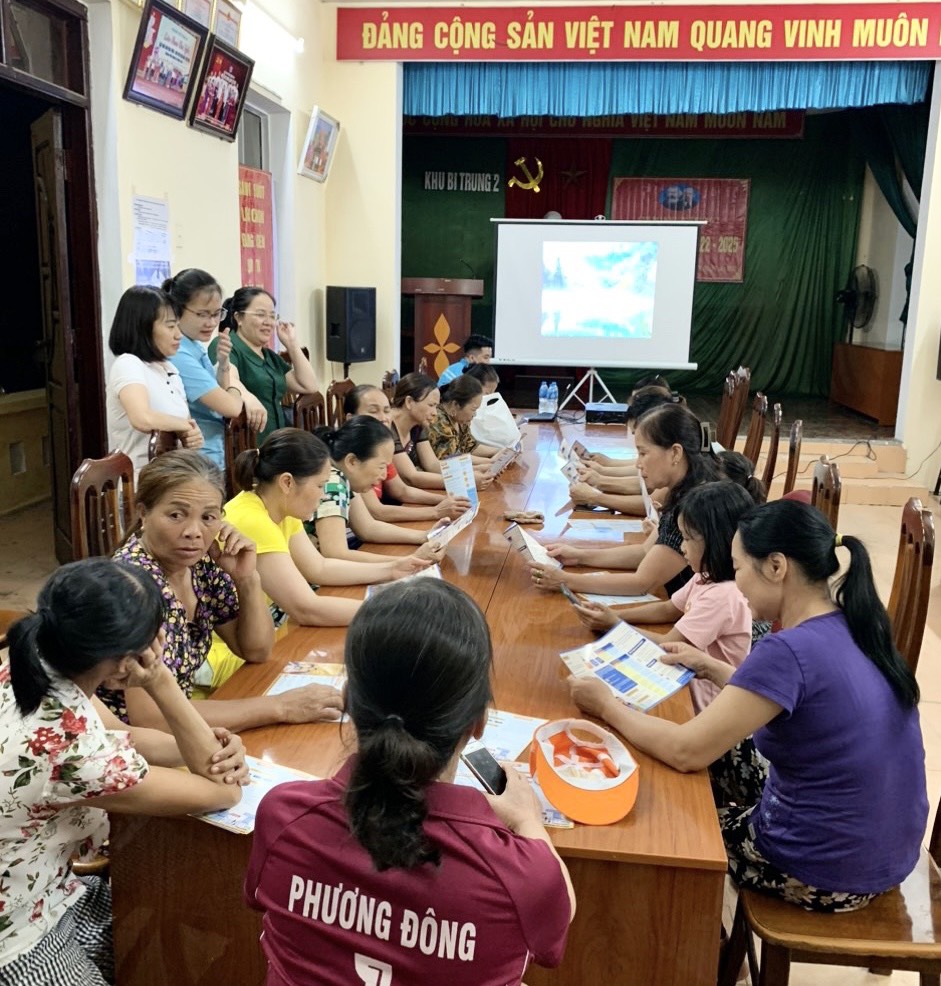 BHXH thành phố Uông Bí phối hợp với UBND phường Phương Đông tuyên truyền về chính sách, lợi ích khi tham gia BHXH tự nguyện tại khu Bí Trung 2.