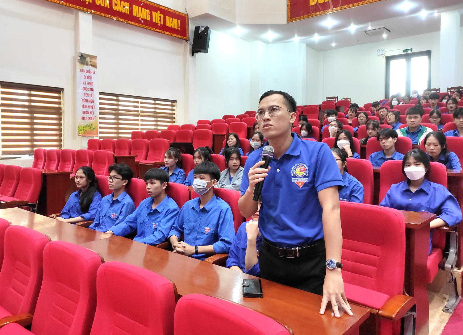 Đồng chí Trần Văn Giàu, Bí thư Thành Đoàn Uông Bí truyền đạt nội dung chuyên đề tại lớp bồi dưỡng.