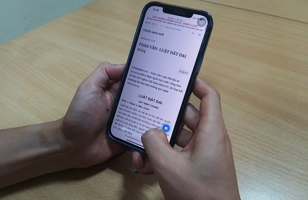 Người dân tìm hiểu nội dung Luật Đất đai trên trang điện tử Chính phủ.