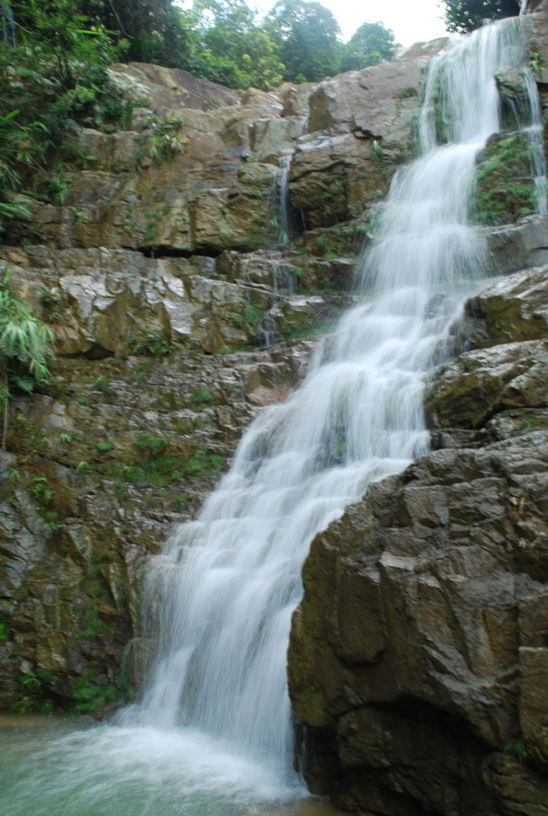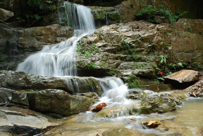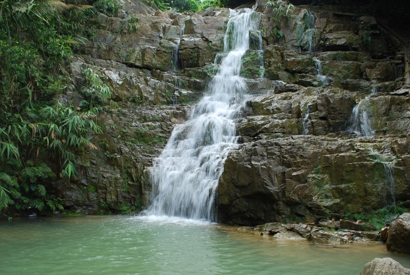 Con suối có lưu lượng nước khá lớn, chảy ngày đêm, uốn lượn, rì rào qua 3 tầng thác đổ xuống những lựng phía dưới.