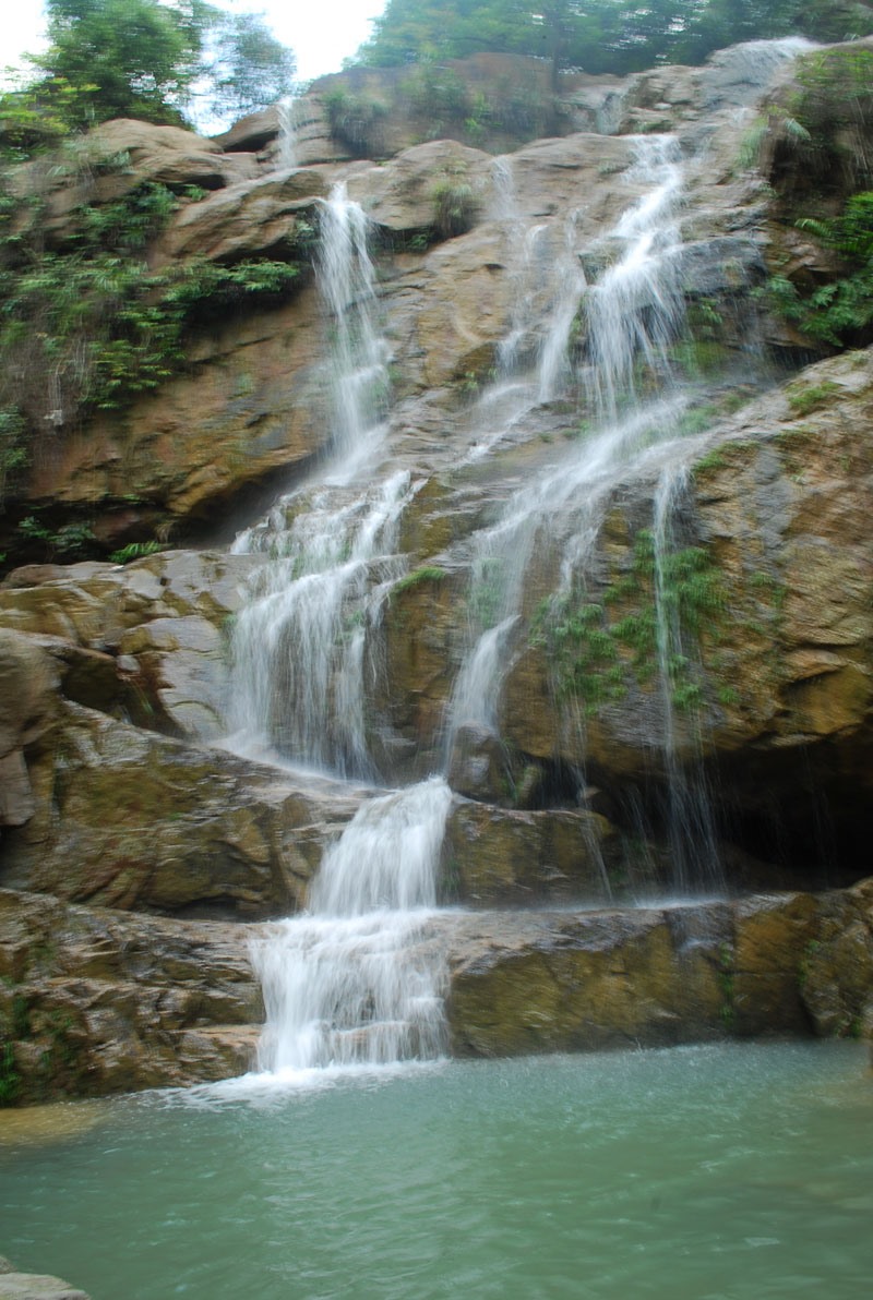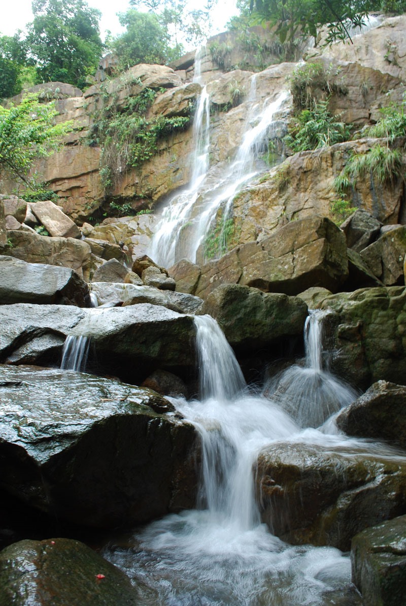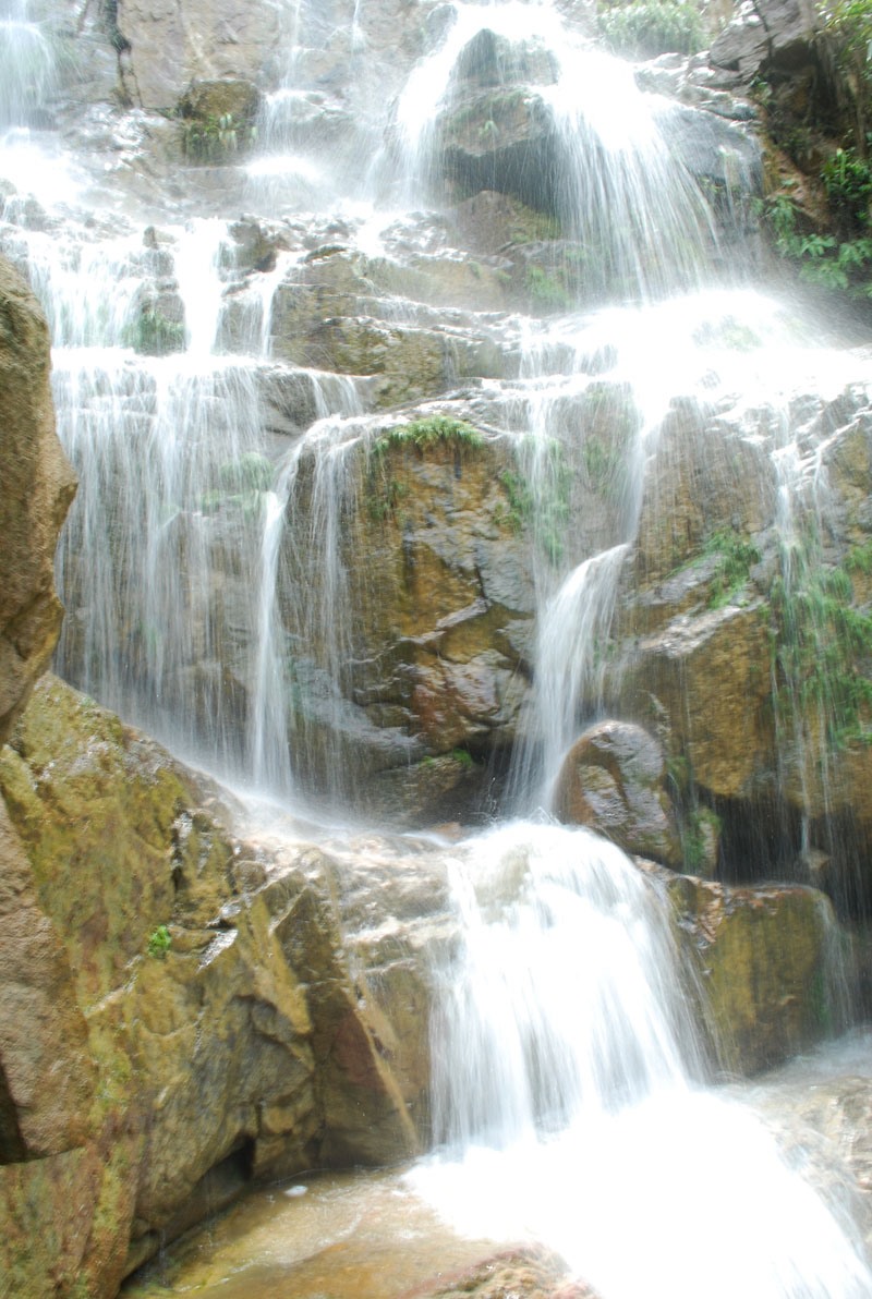 Thác nước ở đây không quá cao, không sừng sững mà chảy thành tầng qua những phiến đá phẳng lì, xếp lớp vuông vắn như những chiếc giường, chiếc ghế khổng lồ.