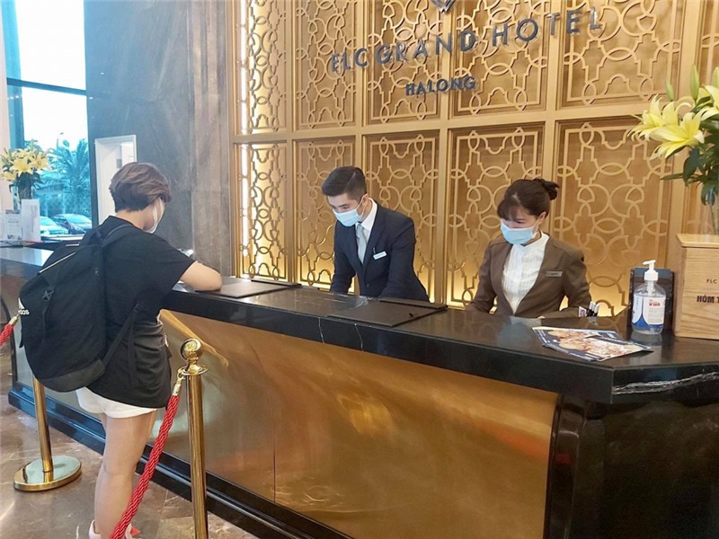 Du khách làm thủ tục nhận phòng tại khách sạn FLC Grand Hạ Long.