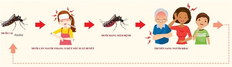 Theo PGS.TS.BS. Phạm Thị Bích Đào, virus DENV gây sốt xuất huyết được truyền sang người qua vết cắn của muỗi cái bị nhiễm bệnh, chủ yếu là muỗi Aedes aegypti. Các loài khác trong chi Aedes cũng có thể đóng vai trò là véc-tơ, nhưng sự đóng góp của chúng chỉ là thứ yếu so với Aedes aegypti.