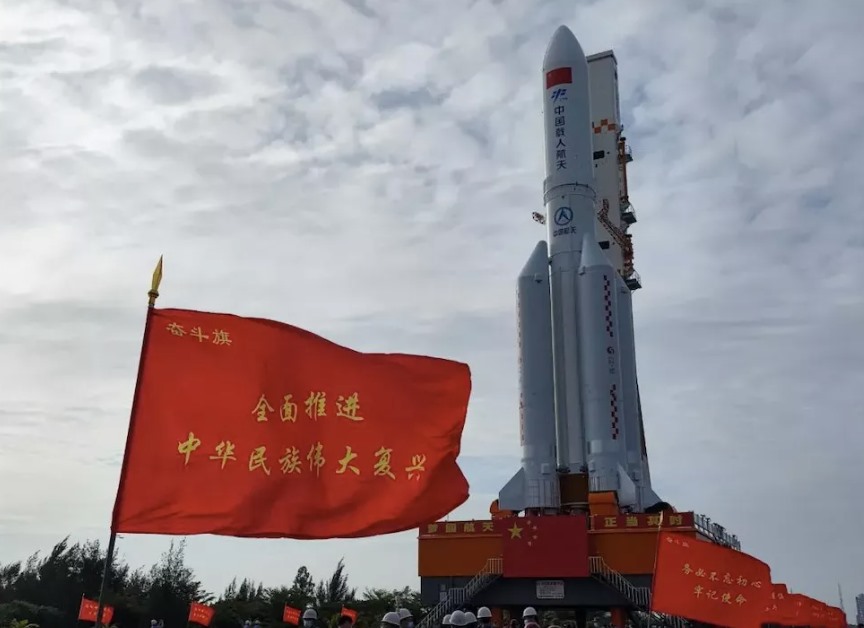 Tên lửa Trường Chinh-5B mang theo module Mộng Thiên tại bãi phóng Văn Xương ngày 25.10.2022. Ảnh: Space