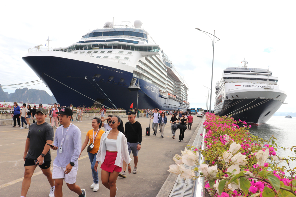 Khách du lịch tàu biển tại Cảng tàu khách quốc tế Hạ Long.