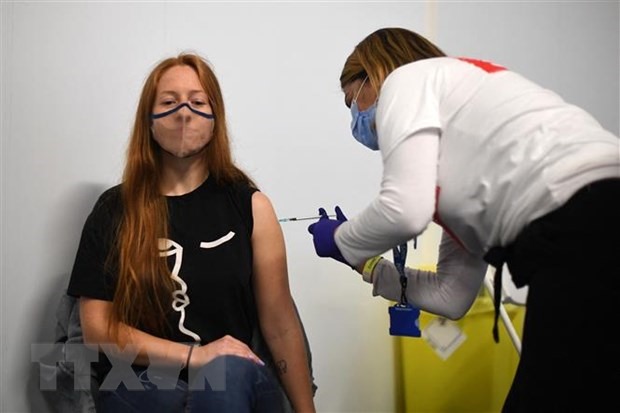 Nhân viên y tế tiêm vaccine ngừa COVID-19 cho người dân tại London, Anh, ngày 25/6/2021. (Ảnh: AFP/TTXVN)