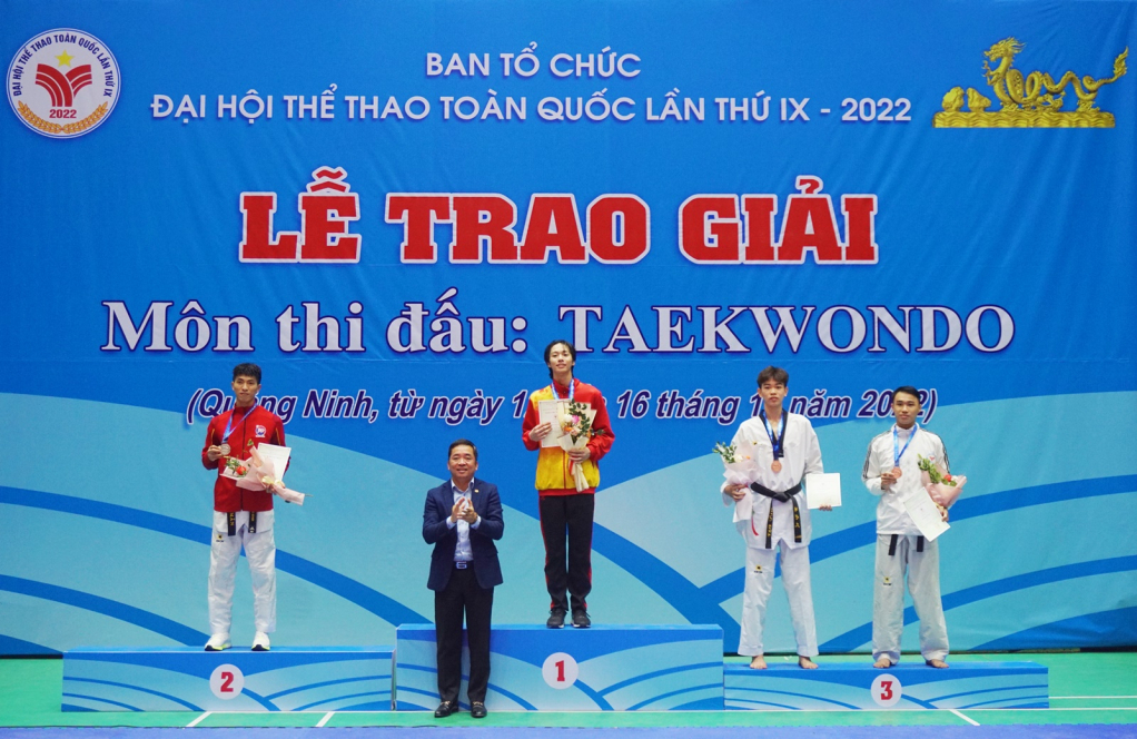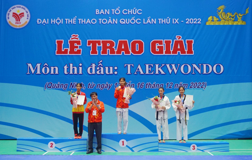 Môn Taekwondo Đại hội Thể thao toàn quốc lần thứ IX diễn ra từ ngày 12 đến ngày 16/12 tại Nhà thi đấu TP Cẩm Phả. Tham gia tranh tài tại Đại hội lần này có 304 VĐV đến từ 40 tỉnh, thành phố. Các VĐV tranh tài ở nội dung đối kháng cá nhân với 8 hạng cân của nam: 54kg, 58kg, 63kg, 68kg, 74kg, 80kg, 87kg, trên 87kg và 8 hạng cân của nữ: 46kg, 49kg, 53kg, 57kg, 62kg, 67kg, 73kg, trên 73kg; thi đấu quyền; thi đấu đối kháng đồng đội. Đội tuyển Taekwondo tỉnh Quảng Ninh tham gia thi đấu với 9 VĐV (7 nam, 2 nữ).