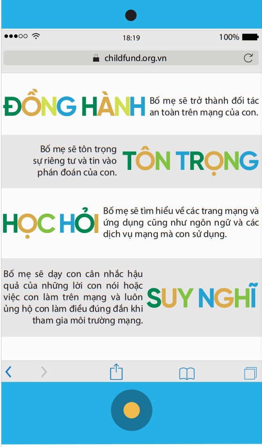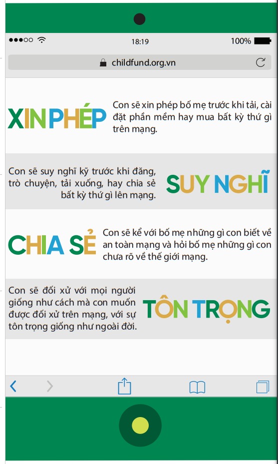 Dưới đây là một số gợi ý về những điều cha mẹ và con có thể cam kết thực hiện cùng nhau, từ cách ứng xử của con trên môi trường mạng, cách cha mẹ có thể trở thành đối tác an toàn trên mạng của con: