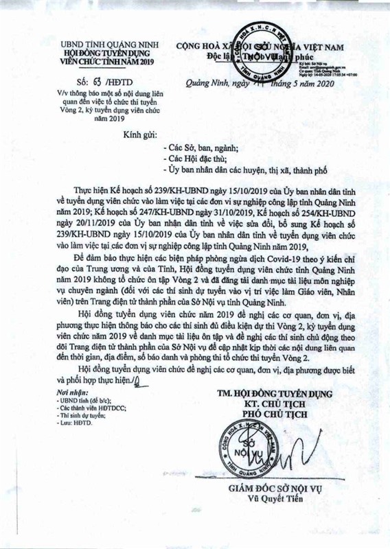 Một số nội dung liên quan đến việc tổ chức thi tuyển Vòng 2, kỳ tuyển dụng viên chức năm 2019