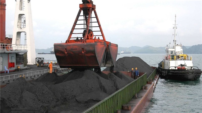 Xuất khẩu than ở cảng nổi Hòn Nét (huyện Vân Đồn, tỉnh Quảng Ninh). (Ảnh: TTXVN)