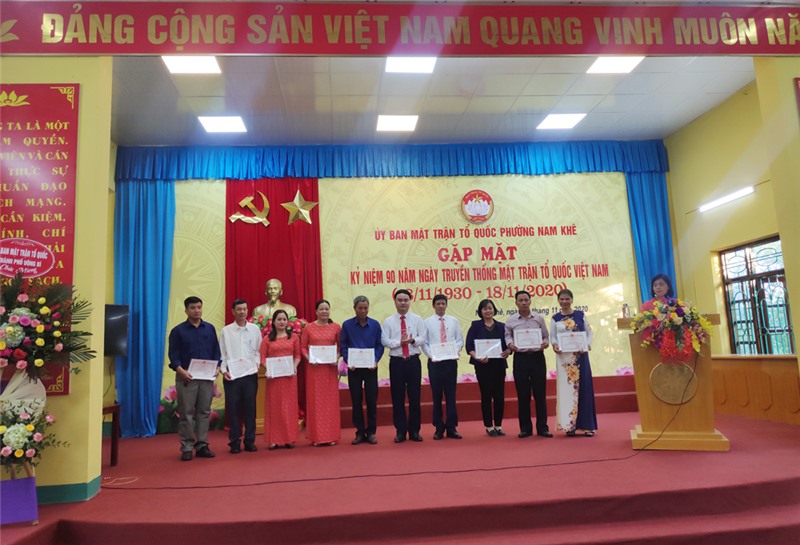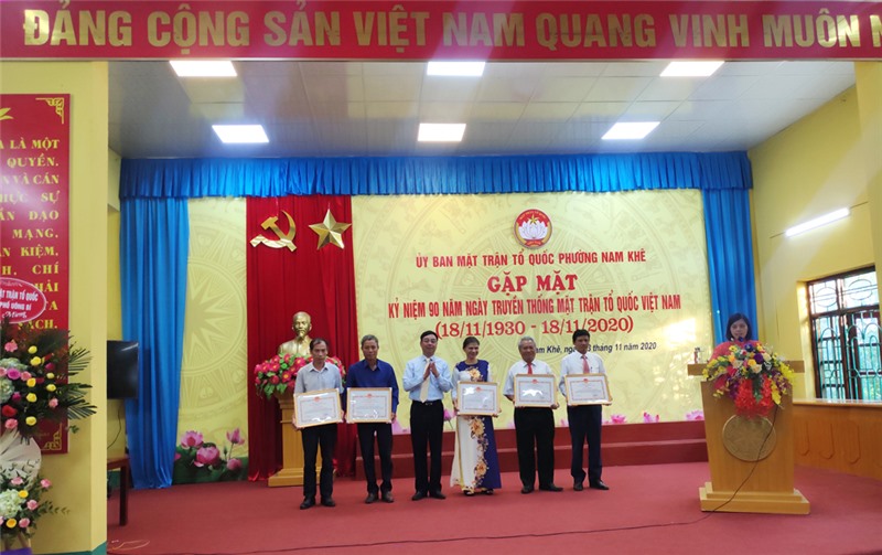 Nhân dịp này, MTTQ phường Nam Khê đã khen thưởng 14 cá nhân có thành tích xuất sắc trong thực hiện cuộc vận động "Toàn dân đoàn kết xây dựng nông thôn mới, đô thị văn minh”. UBND phường khen thưởng các tập thể, cá nhân có thành tích xuất sắc tiêu biểu trong công tác mặt trận.