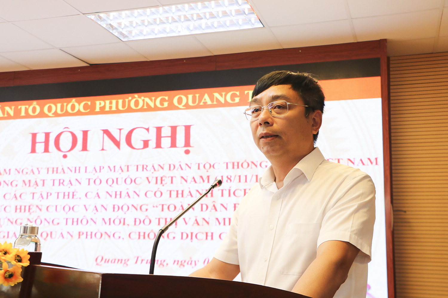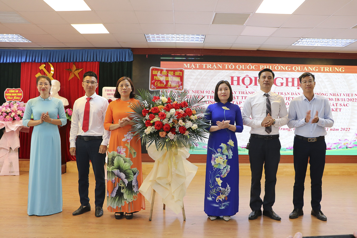 Sáng 4/11, MTTQ phường Quang Trung tổ chức gặp mặt kỷ niệm 92 năm ngày thành lập Mặt trận dân tộc thống nhất Việt Nam (18/11/1930 - 18/11/2022); tuyên dương, khen thưởng các tập thể, cá nhân có thành tích xuất sắc trong thực hiện cuộc vận động Toàn dân đoàn kết xây dựng nông thôn mới, đô thị văn minh.