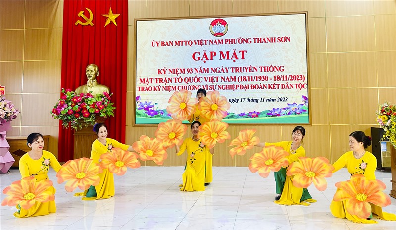 Tại chương trình, các đại biểu đã ôn lại lịch sử, truyền thống 93 năm của Mặt trận Tổ quốc Việt Nam. Phát huy truyền thống vẻ vang đó, những năm qua, Uỷ ban MTTQ Việt Nam phường Thanh Sơn luôn bám sát sự chỉ đạo của Đảng ủy phường, sự hướng của Uỷ ban MTTQ thành phố tổ chức triển khai thực hiện các phong trào, nhiệm vụ chính trị của địa phương và các phong trào, cuộc vận động do MTTQ các cấp phát động; tổ chức tốt phong trào "Cả nước chung tay vì người nghèo, không để ai bị bỏ lại phía sau"; phối hợp vận động xây hàng chục ngôi nhà Đại đoàn kết; từ nguồn kinh phí hỗ trợ, xóa trên 100 lượt hộ nghèo, cận nghèo; vận động ủng hộ đồng bào miền Trung bị ảnh hưởng bởi lũ lụt, ủng hộ các hộ nghèo trên địa bàn tỉnh…