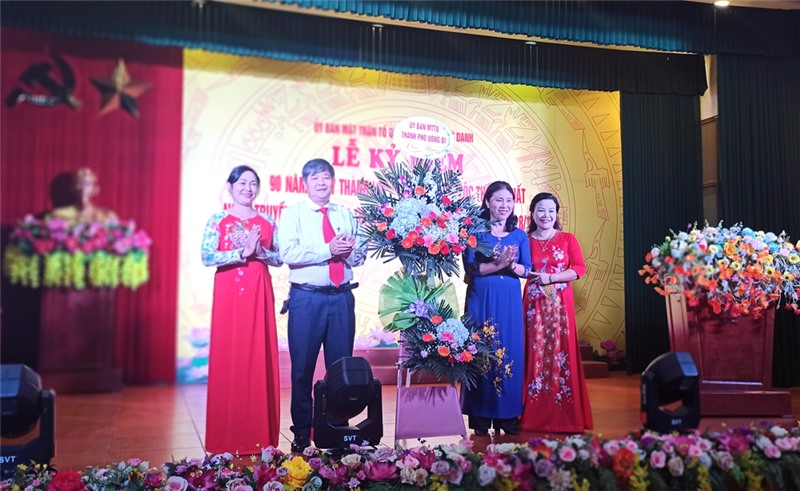 Lãnh đạo MTTQ thành phố tặng hoa chúc mừng.