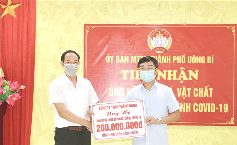 Theo đó, Công ty TNHH Thành Minh và Công ty TNHH Thanh Thảo Quảng Ninh mỗi doanh nghiệp ủng hộ 200 triệu đồng. Số kinh phí này được sử dụng để mua test thử cùng các vật tư y tế phục vụ công tác phòng, chống dịch Covid - 19 trên địa bàn. Đây là sự đóng góp có ý nghĩa thiết thực thể hiện sự quan tâm, đồng hành của các đơn vị, doanh nghiệp, góp phần chung tay cùng thành phố đẩy lùi dịch bệnh Covid-19.