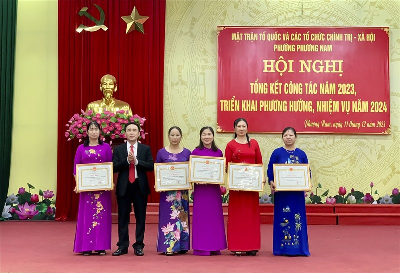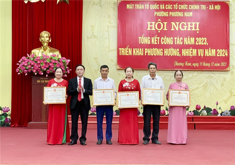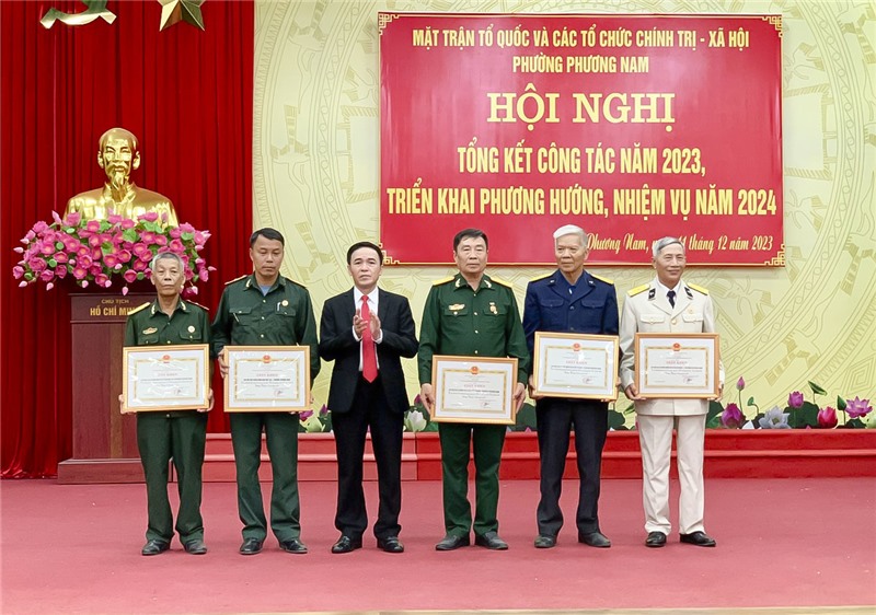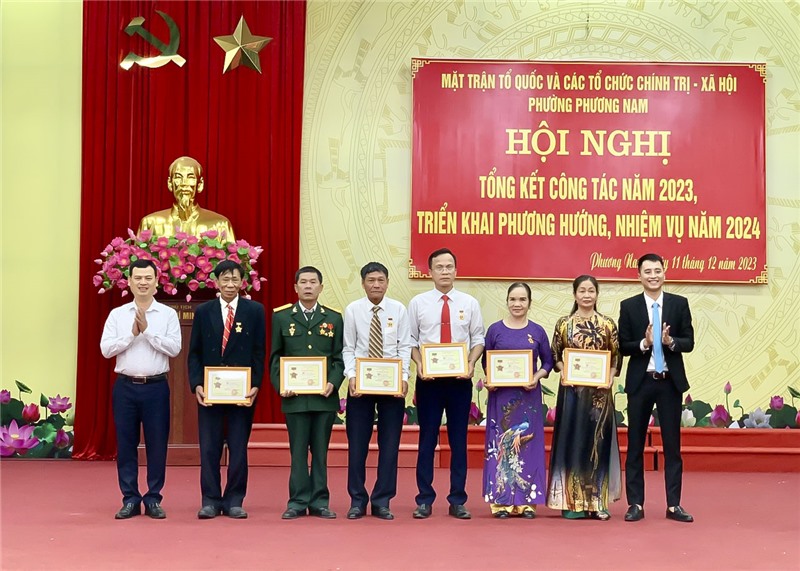 Nhân dịp này, UBND phường Phương Nam đã khen thưởng các tập thể, cá nhân có thành tích xuất sắc trong công tác năm 2023. Uỷ ban Trung ương MTTQ Việt Nam, Hội CCB Việt Nam trao tặng kỷ niệm chương cho 14 cá nhân.