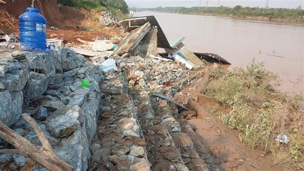 Hiện trường vụ sạt lở bờ sông Thạch Hãn tại thôn Như Lệ, xã Hải Lệ, thị xã Quảng Trị tối 16/10. (Ảnh: Thanh Thủy/TTXVN)