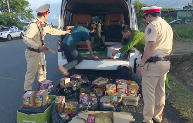 CSGT phát hiện một vụ vận chuyển pháo hoa. Ảnh Minh Lộc.