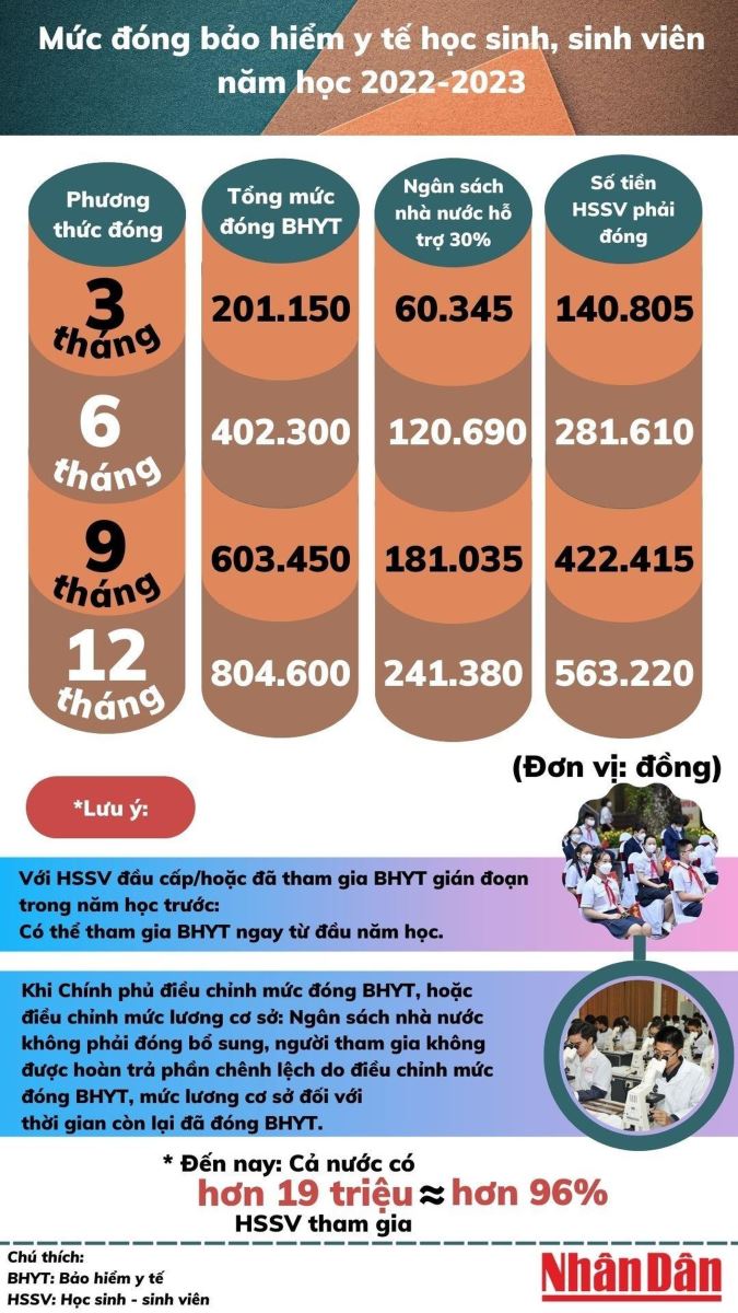 Mức đóng bảo hiểm y tế học sinh, sinh viên năm học 2022-2023