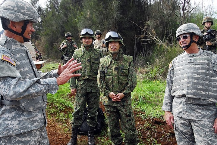 Giới chức quân đội Mỹ và Nhật Bản trao đổi nghiệp vụ.