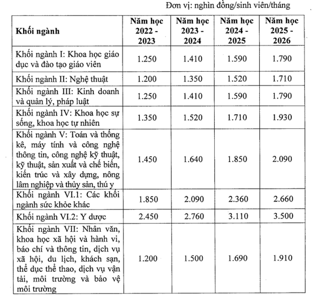 Theo quy định, từ năm học 2022-2023, các trường đại học thu học phí theo Nghị định 81/2021 của Chính phủ. Theo đó, học phí đại học công lập sẽ tăng với tất cả các loại hình trường khác nhau. Trong đó, trường công lập chưa tự chủ dao động từ 12 - 24,5 triệu đồng/năm học 10 tháng. Các trường công lập tự đảm bảo chi thường xuyên được thu 24 - 49 triệu đồng/năm, trường tự đảm bảo chi thường xuyên và chi đầu tư thu 30 - hơn 61 triệu đồng/năm.