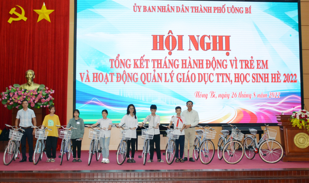 Trong tháng hành động vì trẻ em TP Uông Bí huy động xã hội hóa 400 triệu đồng với hiện vật, tiền mặt của đơn vị, tổ chức, cá nhân hỗ trợ cho học sinh mồ côi, khuyết tật, hoàn cảnh khó khăn trên địa bàn thành phố giúp các em điều kiện học tập tốt hơn.
