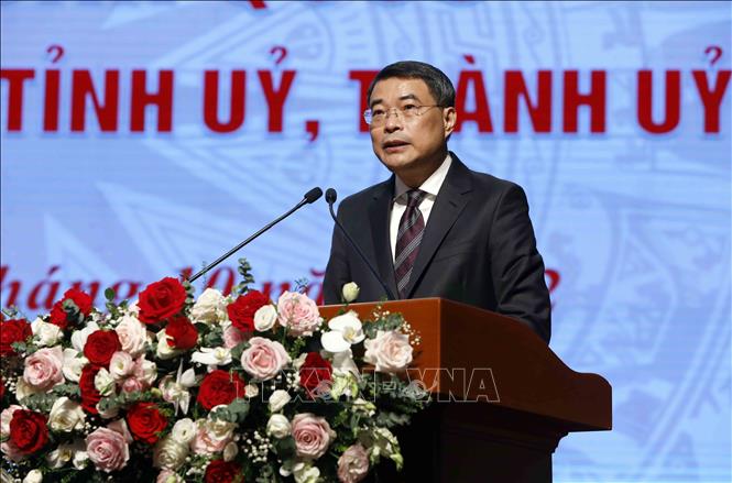 Đồng chí Võ Văn Thưởng, Ủy viên Bộ Chính trị, Thường trực Ban Bí thư Trung ương Đảng dự và chỉ đạo Hội nghị. Đồng chí Lê Minh Hưng, Bí thư Trung ương Đảng, Chánh Văn phòng Trung ương Đảng chủ trì Hội nghị.