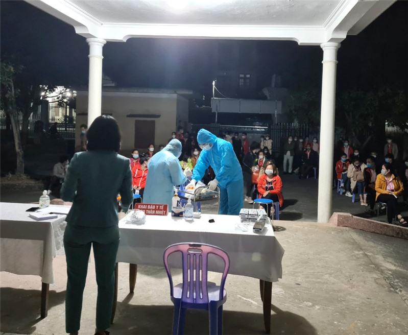 Xã Thượng Yên Công tổ chức test nhanh kháng nguyên cho công nhân khu công nghiệp Vship đi làm về địa phương.