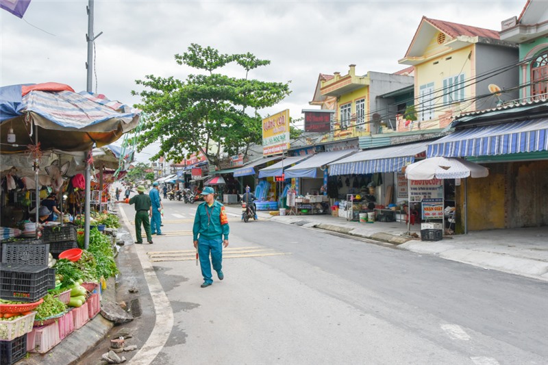 Lực lượng chức năng xã Quảng Long (huyện Hải Hà) ra quân kiểm tra việc chấp hành quy định trật tự đô thị tại chợ ngã ba Long Bình.