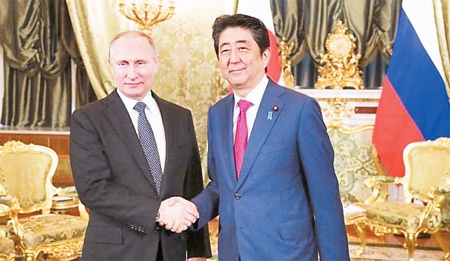 Theo TASS và Roi-tơ, ngày 27-4, tại Mát-xcơ-va, Tổng thống Nga V.Pu-tin đã hội đàm với Thủ tướng Nhật Bản S.A-bê đang ở thăm Liên bang Nga. Trong cuộc hội đàm, hai nhà lãnh đạo đã thảo luận về vấn đề hiệp định hòa bình, thúc đẩy cải thiện quan hệ song phương cũng như các vấn đề quốc tế cùng quan tâm. Hai bên khẳng định tiếp tục phát triển hợp tác cùng có lợi, cũng như sẵn sàng cùng nhau giải quyết các vấn đề trong quan hệ song phương.