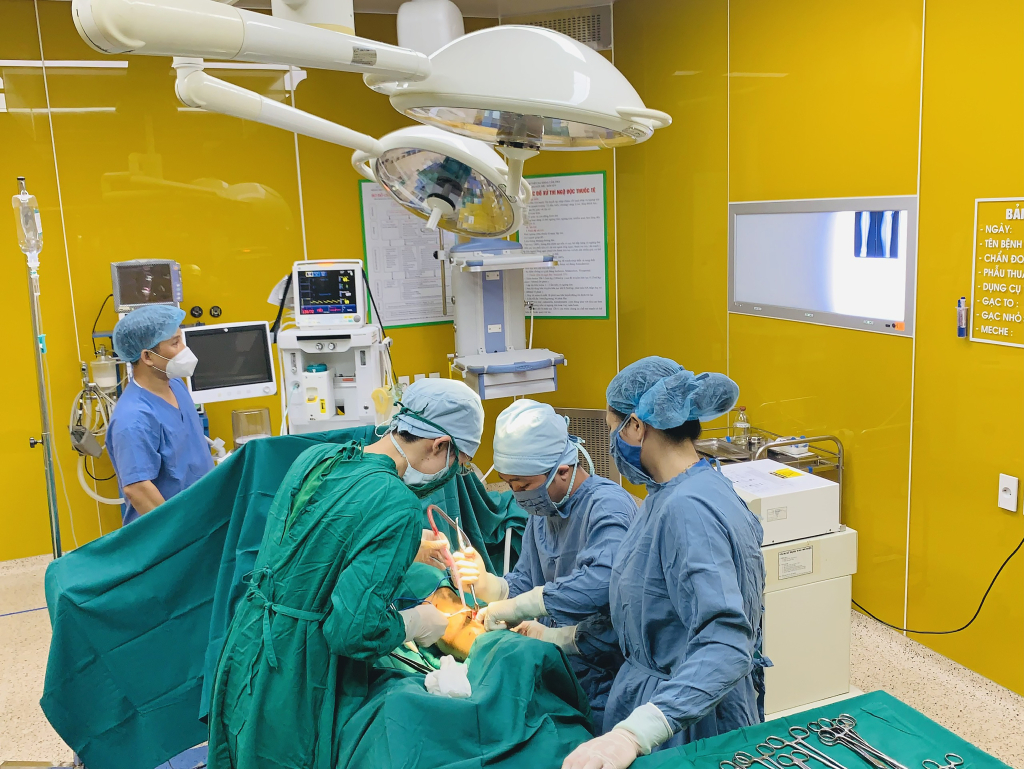 Phẫu thuật nối xương cẳng chân cho bệnh nhân tại Bệnh viện Đa khoa Cẩm Phả. Ảnh: Hoài Minh