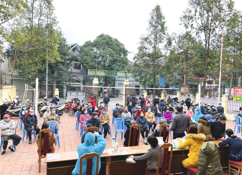 Khám phân loại sức khỏe trước khi tiêm chủng vắc-xin phòng Covid-19 tại phường Quảng Yên (TX Quảng Yên).